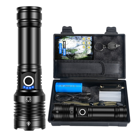 ชาร์จ 100000 Lumens สูงไฟฉายกันน้ํา LED Light ลูกปัดไฟฉายที่แข็งแกร่งที่สุดพร้อมแบตเตอรี่ 26650